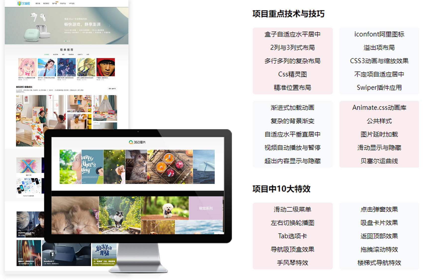 - 专门设计了 30 个小而美的常用网站效果案例,目的是将所学习到标签和样式进行灵活运用,可快速看到效果。
