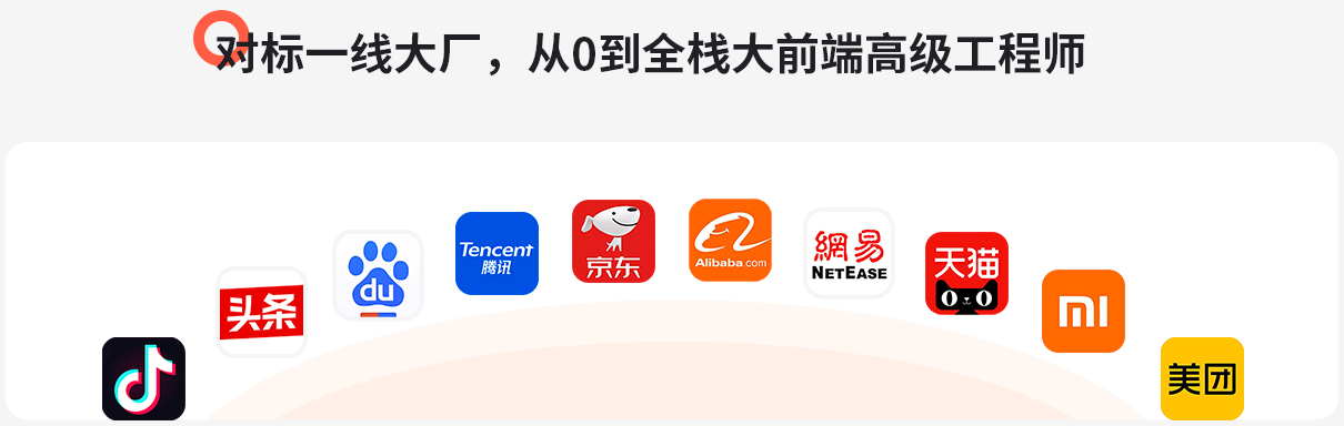 - 课程完成后达到独立完成企业真实 PC 端项目开发、移动 WebApp 项目开发、多端响应式项目开发,云服务器项目部署上线,并掌握一线大厂项目开发布局规范和标准